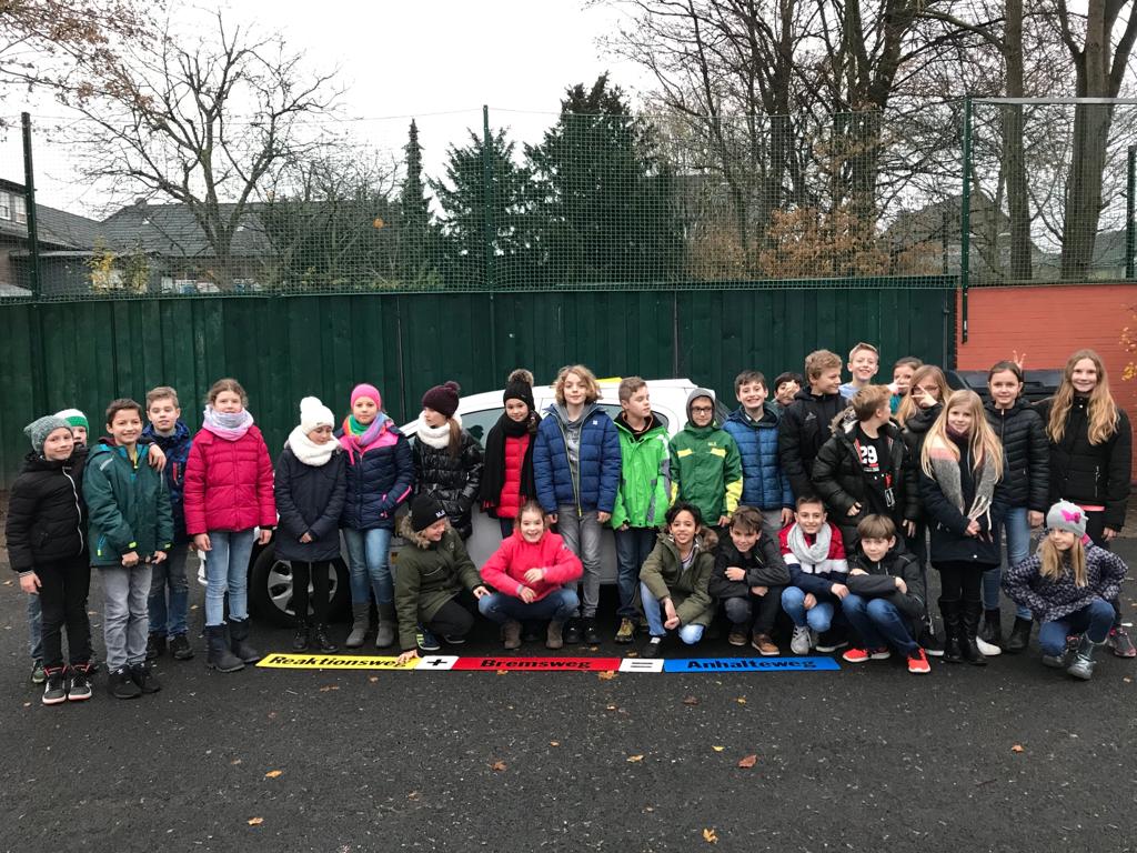 „Was, sooo lange braucht ein Auto, um zum Stehen zu kommen!?“ Die Überraschung war bei vielen Fünftklässlern groß, als Peter Machel mit seinem ADAC-Fahrzeug auf Schulhof des Adolfinums praktische Experimente zum Thema Bremsweg durchführte. Denn am 6. und 7. Dezember hieß für die Schülerinnen und Schüler der Klassen 5 "Achtung Auto!".