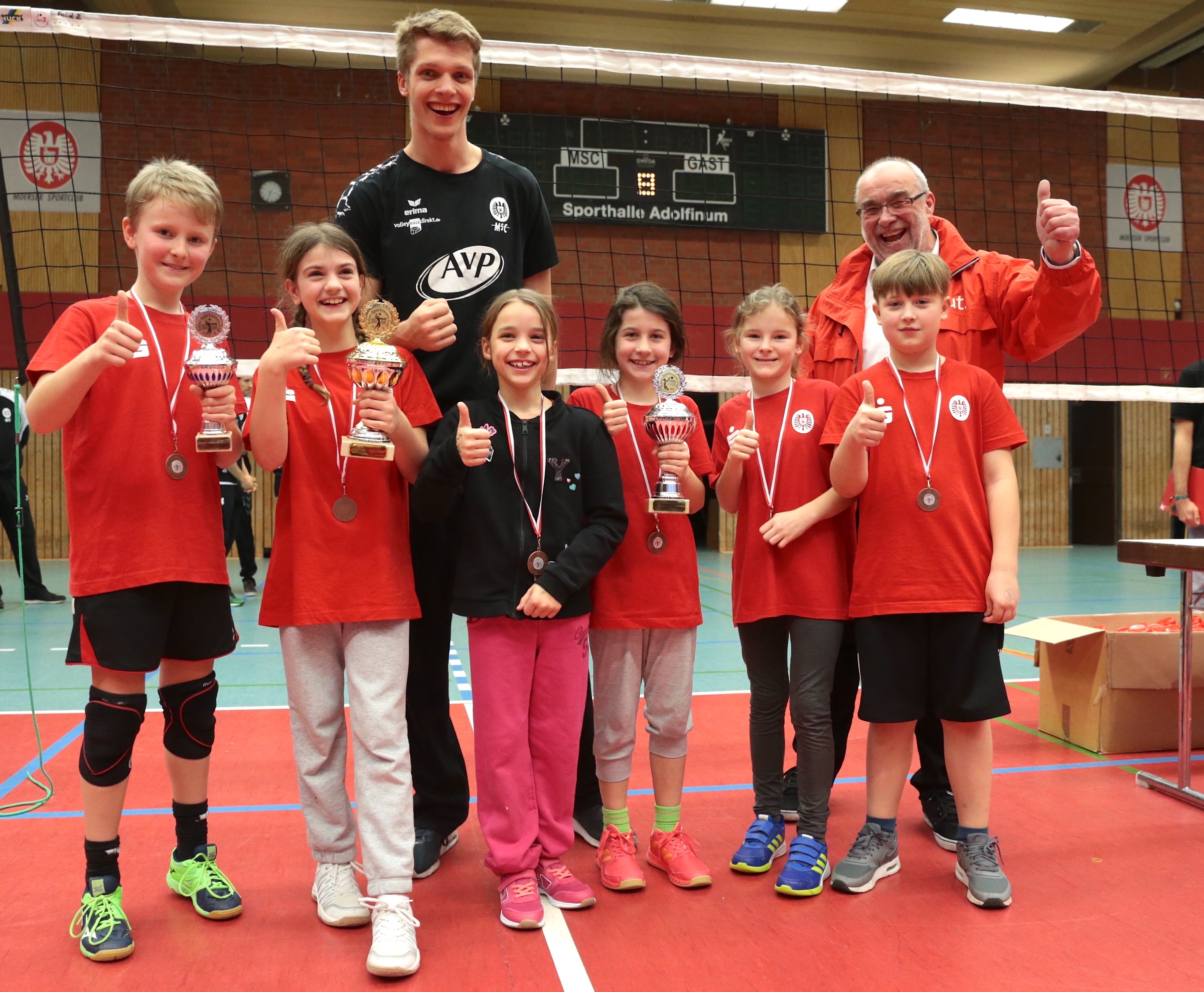 Schon in zwei Wochen können die talentierten und besonders motivierten Schülerinnen und Schüler ein regelmäßiges Trainingsangebot des Vereins nutzen – in der kommenden Saison gibt es schon die Möglichkeit, in einer Mannschaft am Spielbetrieb des WVV teilzunehmen oder nach den Sommerferien als Fünftklässler auf dem Adolfinum in der Volleyball-AG.
