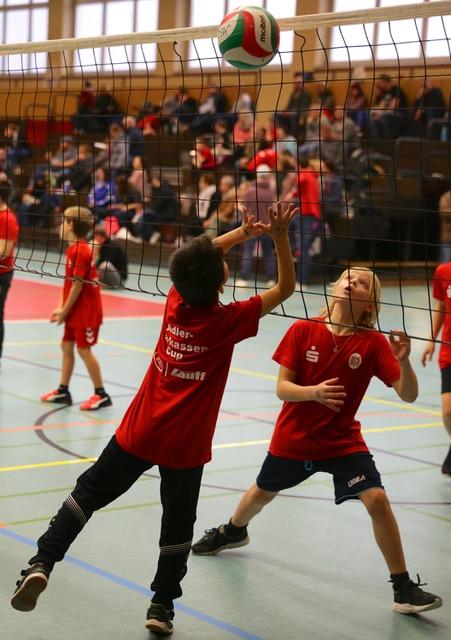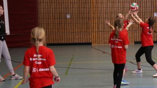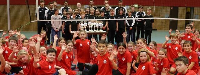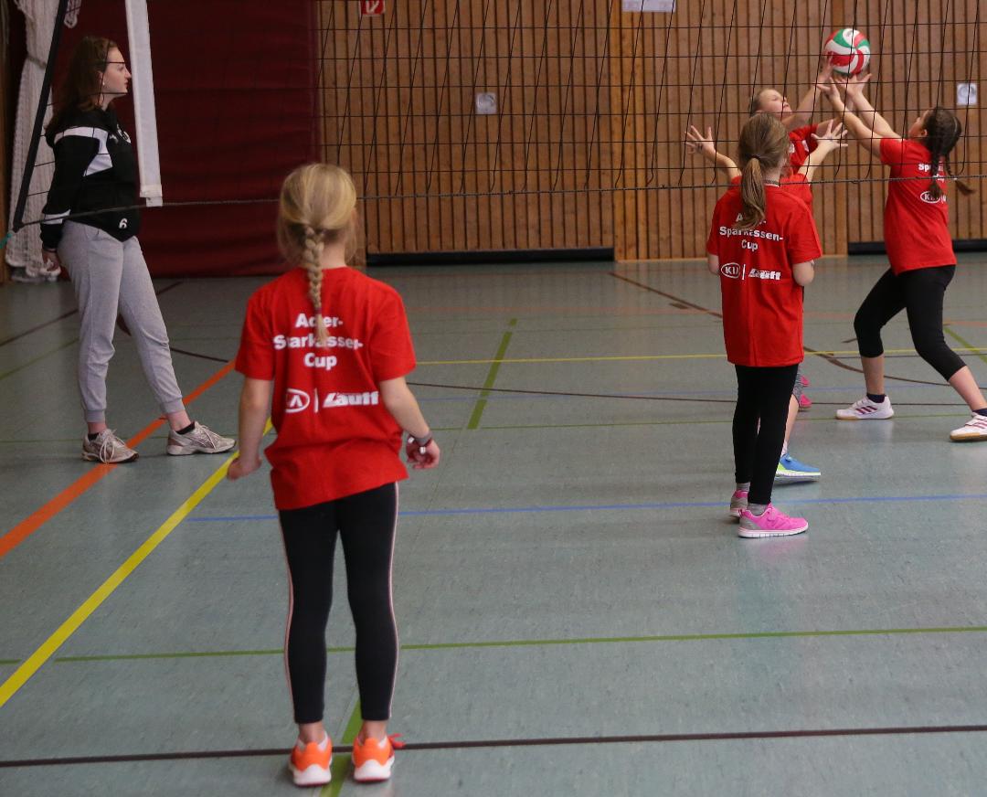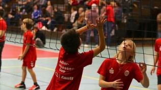 Manche Dinge bleiben einfach im Gedächtnis haften: Bereits zum 14. Male in Folge fand der Adler-Sparkassen-Cup statt: In der Sporthalle des Adolfinum warteten an die 50 erwartungsvolle Grundschüler/innen ungeduldig darauf, einen der vielen Pokale (gestiftet von der Sparkasse) zu ergattern.14 Mannschaften mit knallroten Sparkassen-Shirts waren auf sechs Feldern angetreten, um sich um Plaketten und Pokale zu sichern - und auf dieses Ereignis hatten sich die jungen Volleyballer lange vorbereitet.