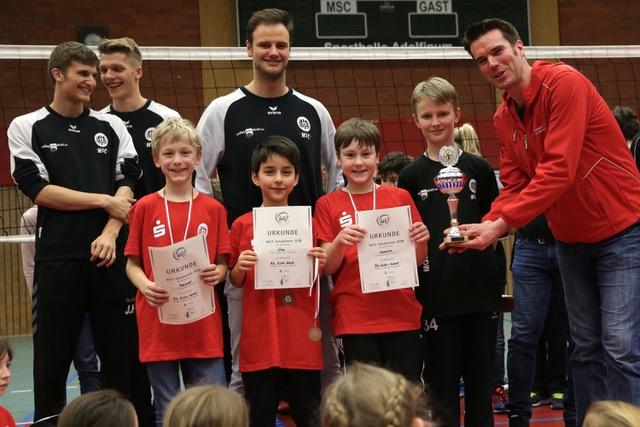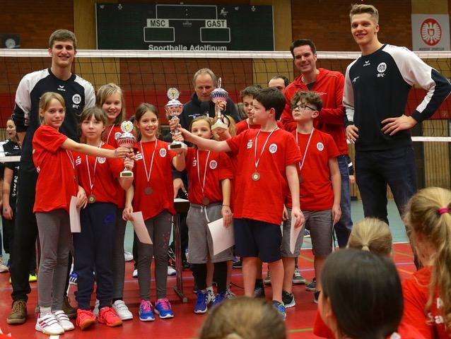 Auch in diesem Jahr waren beim Adler-Sparkassen-Cup ganz viele junge Helfer in Doppelfunktion unterwegs. Schattenberg: „Eine echte Win-Win-Situation. Unsere Schüler haben toll geholfen, die Halle Adolfinum bot wieder einmal einen würdigen Rahmen  und der MSC als auch das Adolfinum bekommen Nachwuchs.“„Letztendlich haben alle gewonnen,“ so Organisator Martin Schattenberg, der das Grundschul-Projekt seit seinem Beginn 2005 federführend betreut und sich besonders darüber freut, dass die Zusammenarbeit zwischen Schule und Verein über die Jahre so vorbildlich verläuft.