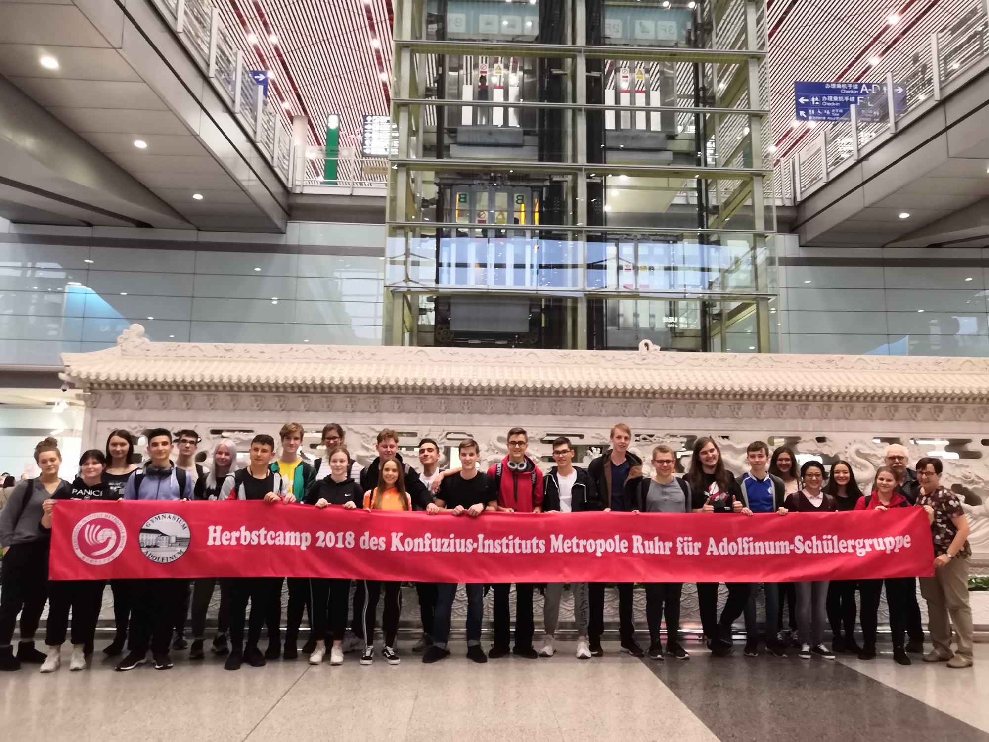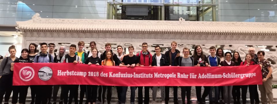 Am Donnerstag, 11. Oktober 2018, starteten 23 Adolfiner zu einer Kultur- und Sprachreise nach China. Auf Einladung des Institutes für Fremdsprachen und Literatur der Universität Wuhan und mit Unterstützung durch Hanban über das Konfuzius-Institut Metropole Ruhr werden die Schülerinnen und Schüler ereignisreiche Wochen in China verbringen.