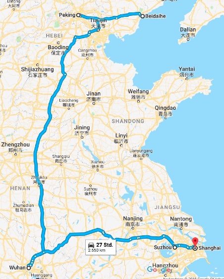 Langer Weg: die Reiseroute durch China.