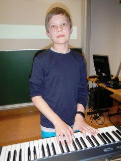 Die EWP-Themenpalette ist enorm. Timo Otto (8d) hat sich mit Stammzellenforschung befasst, Luca Hoffmann (6b) mit der "Faszination Meeresleuchten", Jakob Wittenbron (7b) mit "Kinderrechten und ihrer heutigen Achtung" - nur drei Beispiele von vielen. Julius Fischer hat zum zweiten Mal beim EWP mitgemacht. Seine Leidenschaft gilt der Musik. Vergangenes Jahr befasste sich der Siebtklässler mit Beatboxing - dem Erzeugen von Percussions- und anderen Klängen mit dem Mund und einem Mikrofon. In diesem Jahr hat sich Julius mit dem Songwirting befasst - "von der Idee bis zum Ohrwurm". Er hat einen Songtext geschrieben und sich dazu eine Melodie ausgedacht. Das Ganze hat er zur eigenen Keyboardbegleitung eingespielt. Weil er sich gesampelter Klänge bediente, könnte man meinen eine komplette Band wäre dabei. Und wie fabriziert man nun einen Ohrwurm? Ein bestimmtes "Rezept" gebe es zwar nicht, sagt Julius - "Das ist ein künstlerischer Prozess". Aber: "Es gibt Akkordfolgen, die häufig in der Popmusik vorkommen."