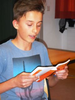 Kein EWP ohne die abschließende Präsentation: Mithilfe von Powerpoint-Präsentationen erzählen die Schüler in kurzen Vorträgen vor Publikum von ihren Projekten. Die Raumfahrt-Mädels Merle, Nele und Anastasia führten dabei gestern auch den "Raumanzug" vor, den sie gebastelt haben. "Ein echter Anzug ist 140 Kilo schwer", erklärte Nele. Zusammen mit Merle und Anastasia war sie sogar am Deutschen Zentrum für Luft- und Raumfahrt in Köln gewesen. "Der Bruder von meinem Onkel arbeitet da", sagte Anastasia. Sie selbst war die Spezialistin für Astronautenkost. Zum Beispiel werden Pekannüsse gerne mit ins All genommen. "Sie haben viel Eiweiß", erklärte sie. Merle berichtete anhand eines Wirbelsäulenmodells von den Einflüssen der Schwerelosigkeit auf den Körper. "Auf der Erde drückt die Schwerkraft auf die Bandscheiben. In der Schwerelosigkeit dehnen sie sich aus." Ergebnis: Der Mensch ist ein bisschen größer als auf der Erde. Donnerwetter!