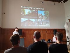 Differenziert: Teamer Lorenzo Breuer während seines Vortrages zur Besichtigung der Gedenkstätten