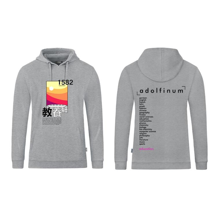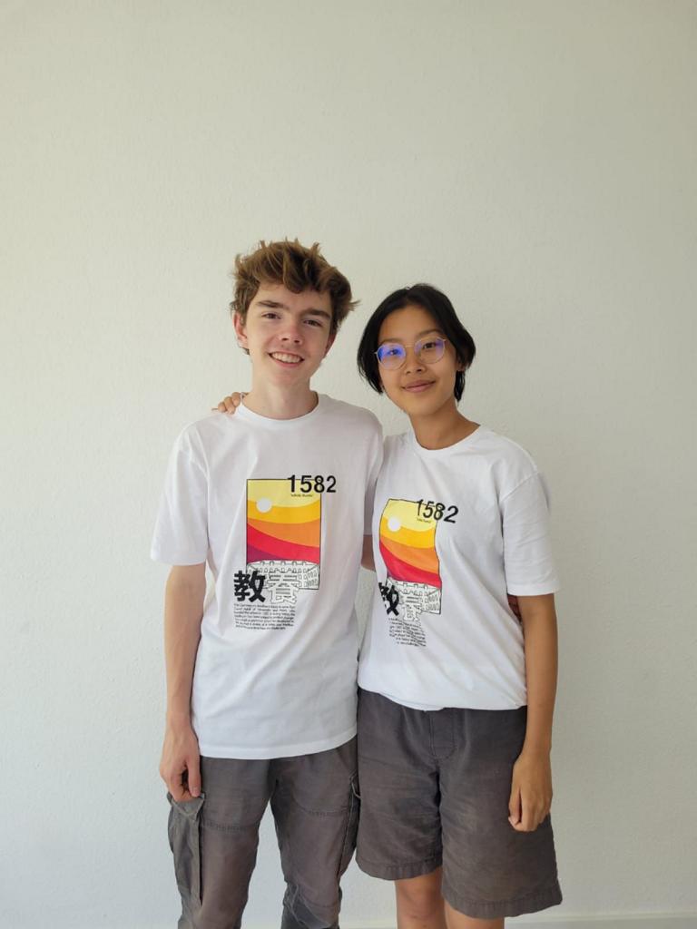 Am Ende des letzten Schuljahres durften Schulleiter Thorsten Klag und Schülersprecher Tom Steilmann bereits Lulu Wang und Mats Schröder zum ersten Platz des T-Shirt Wettbewerbs der SV gratulieren. Damals hielten die beiden Gewinner*innen noch Urkunden in der Hand. Heute tragen sie ihr eigenes Design auf den T-Shirts. Das Design, welches das Adolfinum, seine Geschichte und all seine Fächer repräsentiert, kann ab sofort als T-Shirt und Hoodie im Adolfinum-Shop bei SanDe-Teamsport bestellt werden. Über folgenden Link geht`s zum Shop: