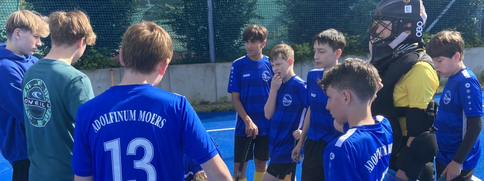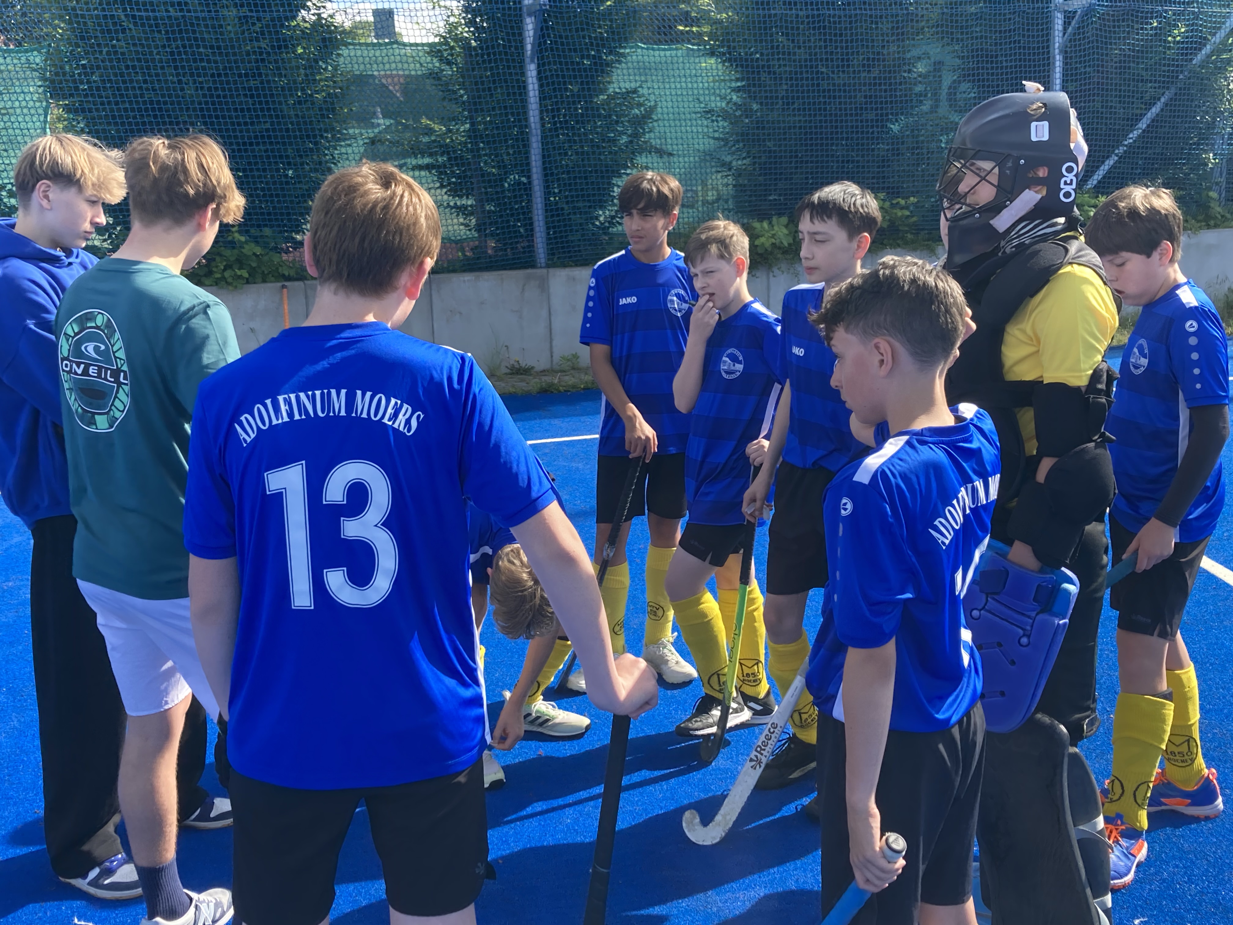 Schüler coachen Schüler: das Hockey-Jungen-Team des Adolfinums beim Bezirksfinale in Krefeld.