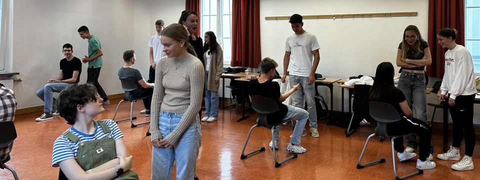 Die Schülerinnen und Schüler lernten in diesem Workshop das Leiden der Figuren am eigenen Leib kennen und erfuhren neben praktischen Beispielen aus der Theaterwelt auch etwas über künstlerische Freiheiten der Strichfassung; sie werden sicher mit geschulterem Blick die anstehende Aufführung wahrnehmen.