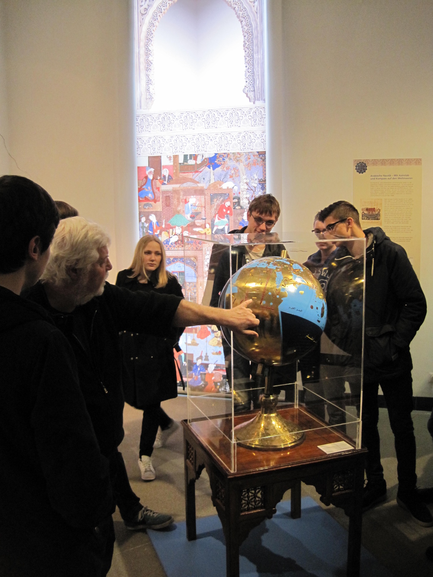Trotz eines plötzlichen Wintereinbruchs begab sich der Geschichtskurs der Einführungsphase – begleitet von den beiden Geschichtslehrern Sonja Förster und Daniel Schirra - am 4. März 2016 auf Exkursion ins Kultur- und Stadthistorische Museum Duisburg. Ziel war die aktuelle Sonderausstellung „Häuser der Weisheit“, die sich mit der Entwicklung der islamischen Wissenschaften vom 9. bis 16. Jahrhundert beschäftigt.