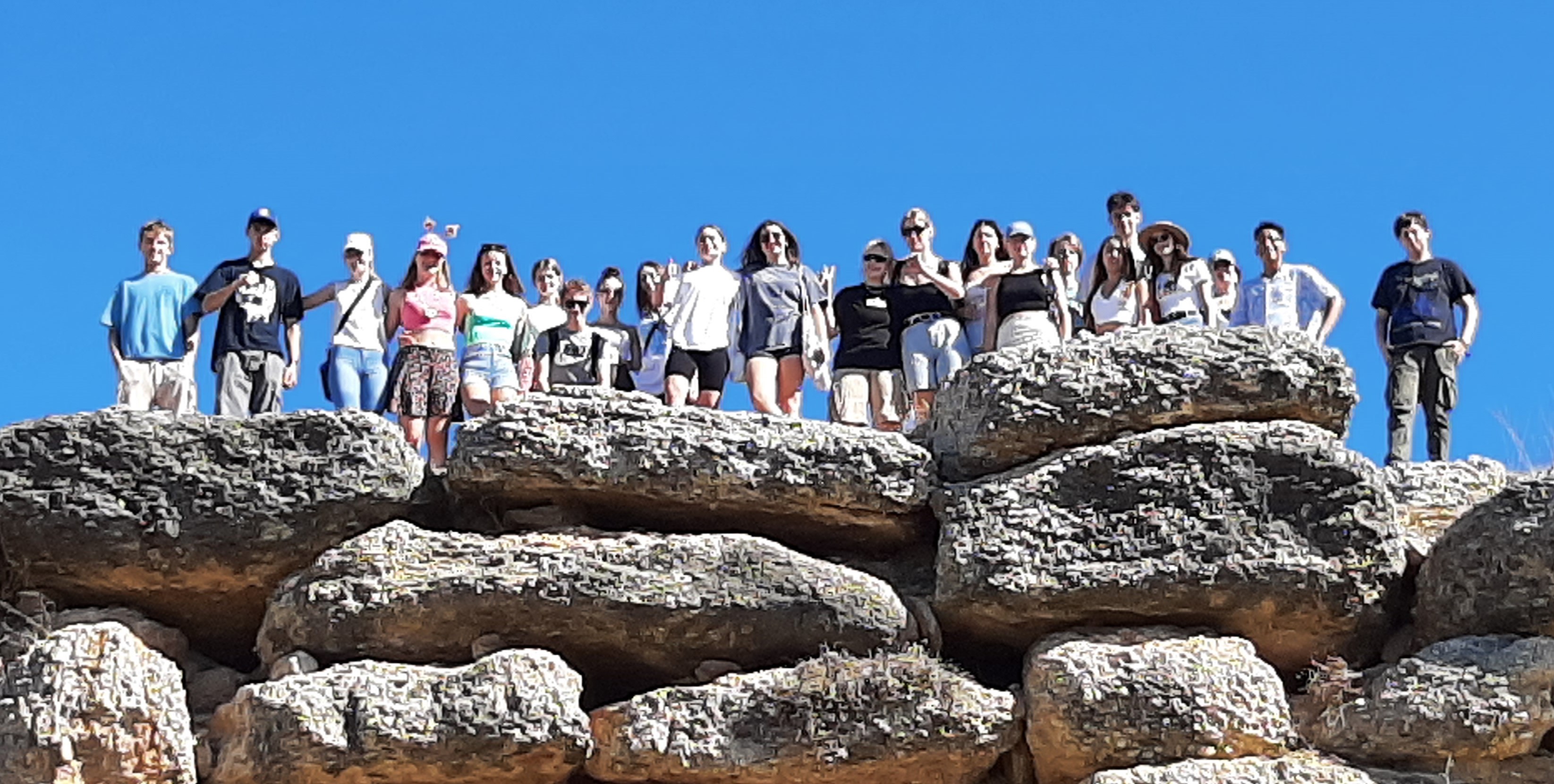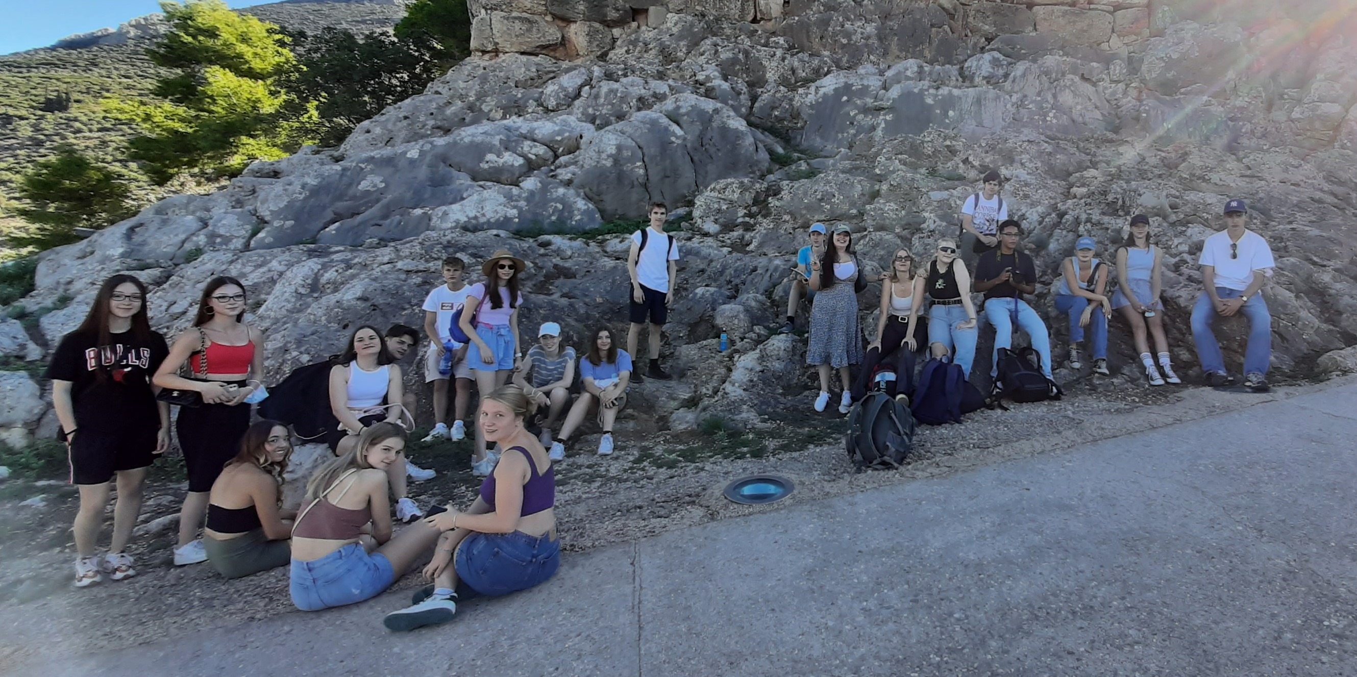 Zur Vertiefung der Unterrichtsinhalte im Fach Griechisch reisten 22 Schülerinnen und Schüler des Gymnasiums Adolfinum aus den Jahrgangsstufen Q1 und Q2 zusammen mit ihren Lehrern Jens Heße und Thomas Backhuys vom 27. September bis 6. Oktober 2022 nach Griechenland. Nach vier Jahren pandemiebedingter Unterbrechung konnte die Fahrt auch dank großzügiger Fördergelder der „Gesellschaft der Freunde und Förderer des Adolfinums e.V.“ endlich durchgeführt werden. Dort begaben sie sich an zahlreichen Orten wie Athen, Delphi oder Mykene auf Spurensuche nach den Anfängen Europas und konnten das Fortleben der griechischen Kultur und Sprache über mehrere tausend Jahre erleben.