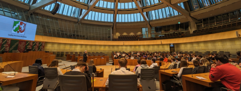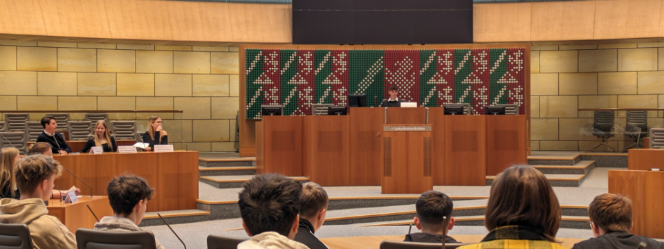 Am 19. Februar 2024 sah der Schultag für die 10A und die 10B mal etwas anders aus. Um 8:00 Uhr machten wir uns mit dem Bus auf den Weg zum Landtag NRW in Düsseldorf.