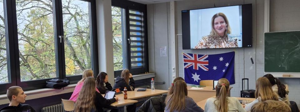 Die interaktive Sitzung bot zudem die einmalige Möglichkeit, Fragen zu stellen, die in keinem Lehrbuch der Welt beantwortet werden. Die Schülerinnen und Schüler nutzten diese Gelegenheit, um ihre Neugierde zu befriedigen und einen authentischen Einblick in das Leben und die Kultur Australiens zu erhalten. Diese besondere Erfahrung bereicherte den Unterricht und wird sicherlich allen Beteiligten in guter Erinnerung bleiben.