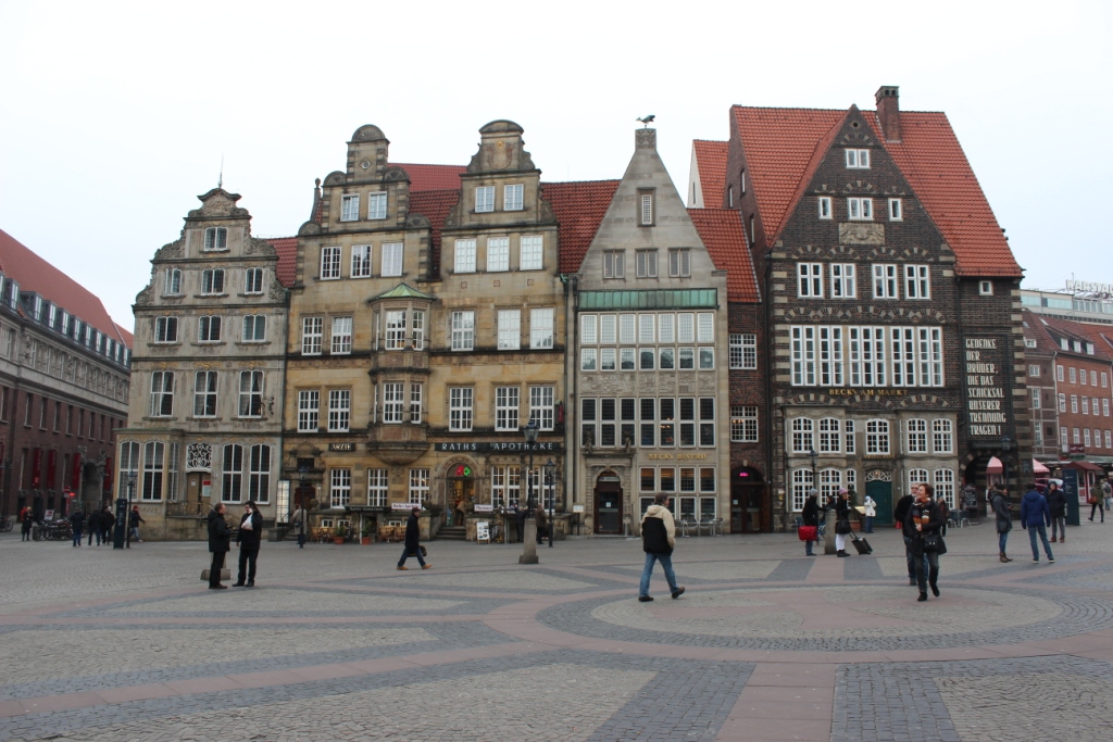 Mittags trafen wir uns auf den Domtreppen und von dort aus startete unsere Stadtführung in Kleingruppen. Die Stadtführerin erzählte uns interessante Fakten über den Dom, die Altstadt, das Schnoorviertel und seinen kleinen Gassen, die Touristenattraktion Böttcherstraße und die Uferpromenade Schlachte. Neben dem Vortrag der Fakten wurden uns auch schauspielerische, teils unterhaltsame, aber trotzdem informative Szenen geboten.
