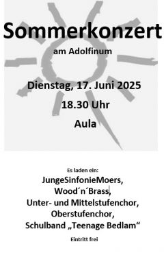 Sommerkonzert: 17. Juni - 18.30 Uhr - Aula Adolfinum