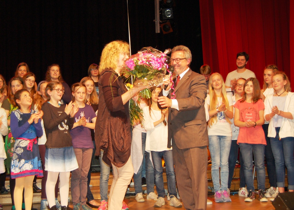 Der gemeinsame Abschluss sagte „Thank you for the music“ mit Worten und Musik von ABBA und an die Adresse von Christel Lietzow, die nach über 30 Jahren leider von der Adolfinum-Bühne in den wohlverdienten Ruhestand abtritt.