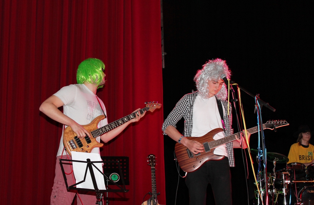 Jörg Meschendörfers Schulband und ihre wilden Perücken.