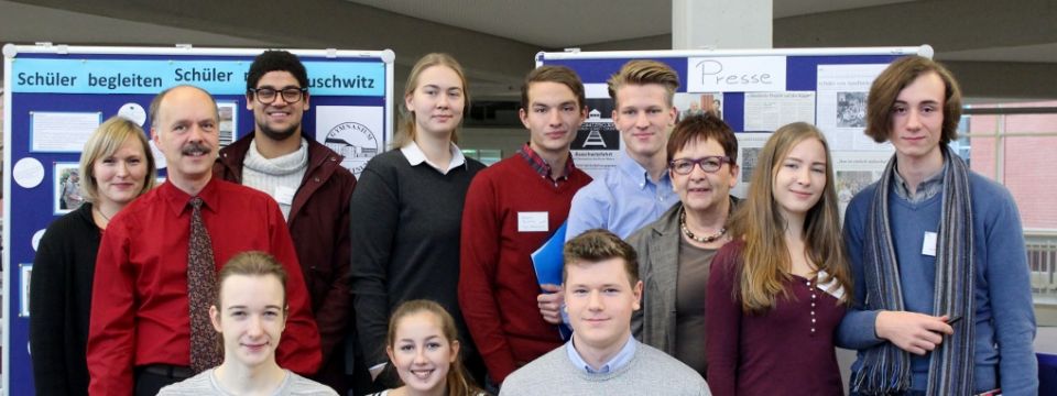 Tolle Repräsentanten des Adolfinums: Die Schülergruppe der Auschwitzfahrt mit den Organisatoren Miriam Milde, Dr. André Remy und Maria Vollendorf-Löcher.