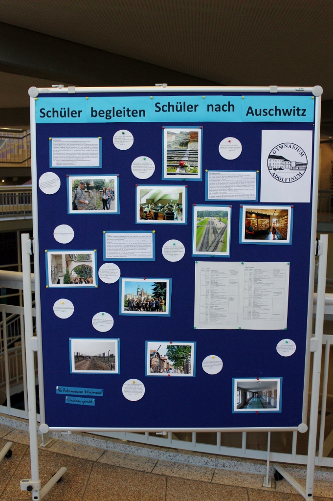 Motivationsschreiben, Eindrücke und vieles mehr: Auf der Informationstafel präsentierte die Gruppe die viele Aspekte der Auschwitzfahrt.