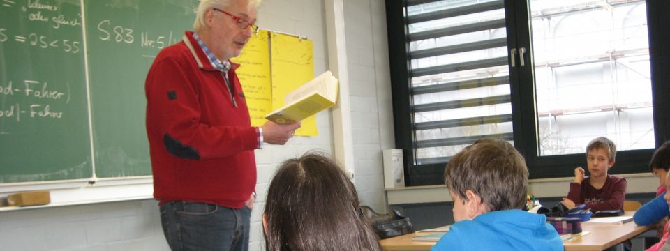 Spannende Lesung: Joachim Friedrich las in der 5c aus seinem neuesten Buch "Die furchtlosen zwei vom Bahnsteig 3".