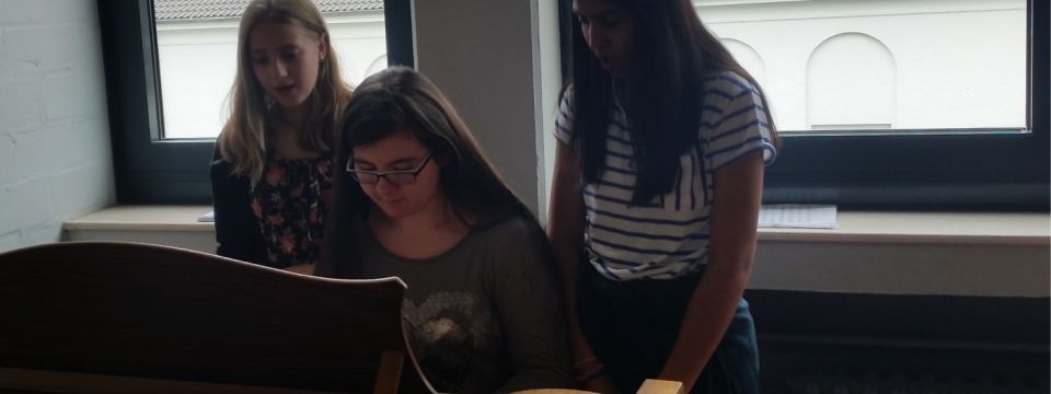 Die Schülerinnen Mery Stern, Dilan Öztürk und Malin Kalnins (Klasse 8b) haben mit großem Engagement im Fach Griechisch am diesjährigen Bundeswettbewerb Fremdsprachen teilgenommen. Sie reichten eine Vertonung ihres selbstgedichteten Hymnos’ Τῆς Ἑλλάδος λύπης ("Die Trauer Griechenlands") ein und wurden dafür mit einer Urkunde geehrt. Griechisch-Lehrer Jens Heße ist stolz auf seine Schüler: "Es ist sehr erfreulich zu sehen, mit welchem Engagement die Schüler sich für den Wettbewerb engagiert haben - für mich ist das ein klares Indiz, dass die alten Sprachen auch heute Kinder und Jugendliche faszinieren können".