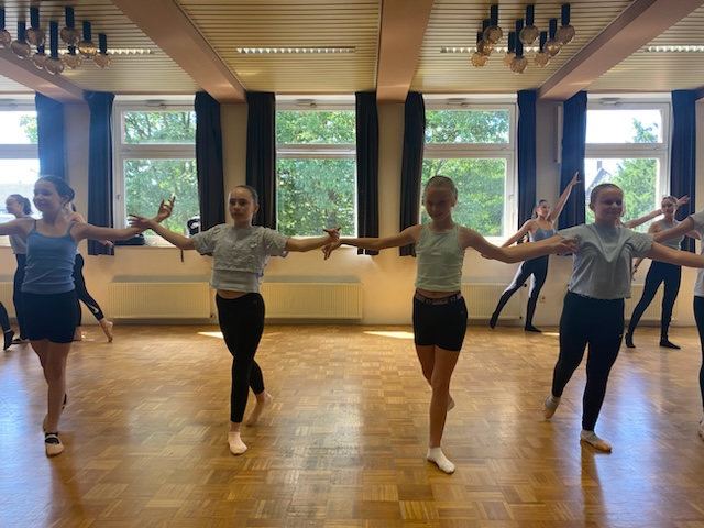 Zu Beginn der letzten Schulwoche lernten die Schülerinnen unter der Leitung von Frau Mathieu und mit Unterstützung von Frau Samp die Grundbegriffe des Ballettes zunächst in der Theorie kennen, anschließend konnte in den Räumlichkeiten der Ballettschule Grohs in Moers das theoretisch Gelernte zu klassischer Musik an der Ballettstange umgesetzt werden.