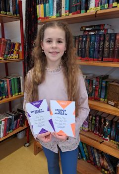 Tirza: Im März bekomme ich eine Nachricht, wann die Bezirksrunde stattfinden soll. Dafür muss ich mir wieder ein neues Buch aussuchen. Jetzt gerade bin ich auf der Suche nach einem spannenden Buch, um daraus vorzulesen. Einige Kinder aus meiner Klasse haben mir schon Vorschläge gemacht, deshalb lese ich gerade viel.