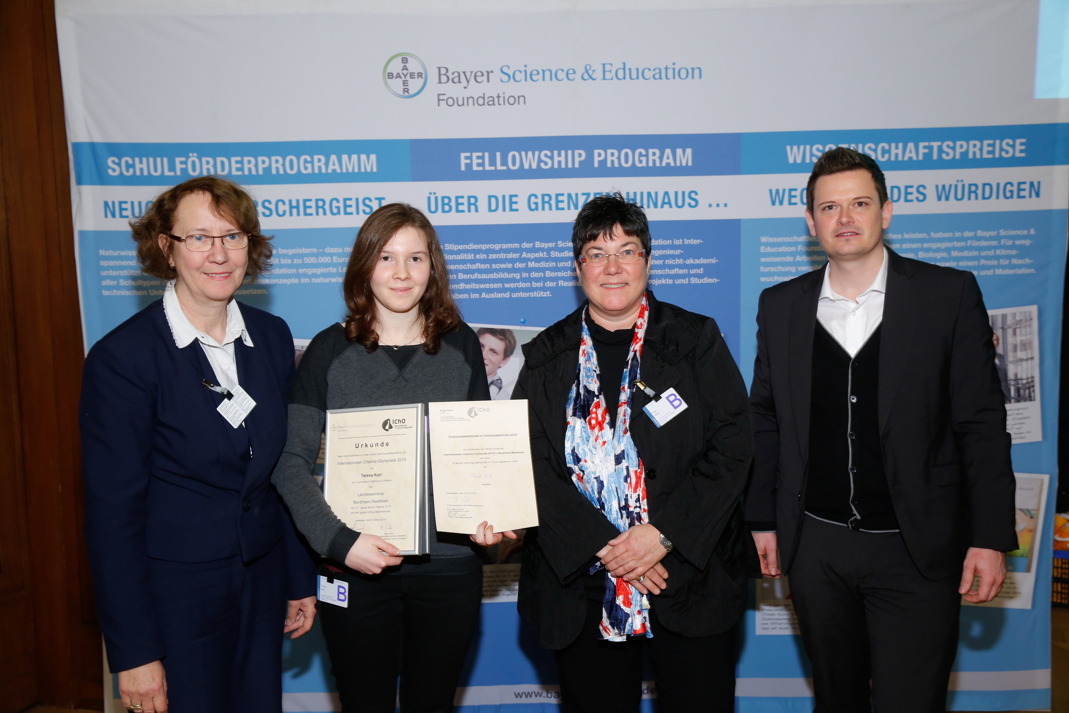 Zum Abschluss des Landesseminars wurden alle Teilnehmer/innen im Beisein von Vertretern aus Politik und Wirtschaft in einer Feierstunde ausgezeichnet. Dort erhielt Teresa noch einen Sonderpreis: ein zweiwöchiges Forschungspraktikum in der Kernforschungsanstalt Jülich. Dies und Aussicht auf weitere Workshops in den kommenden Monaten trösteten sie dann auch ein wenig darüber hinweg, dass sie am Ende doch leider den Einzug in die dritte Runde des Wettbewerbs verpasste, zu der nur noch die besten sechzig aus ganz Deutschland zugelassen werden. Gedanklich war sie gelegentlich sicher schon in Baku (Aserbaidschan), wo im Juli das internationale Finale stattfinden wird.