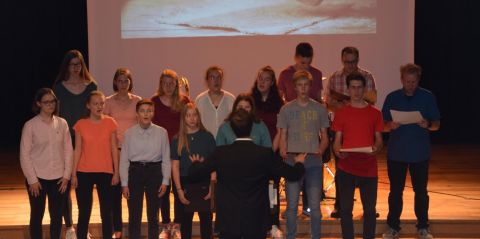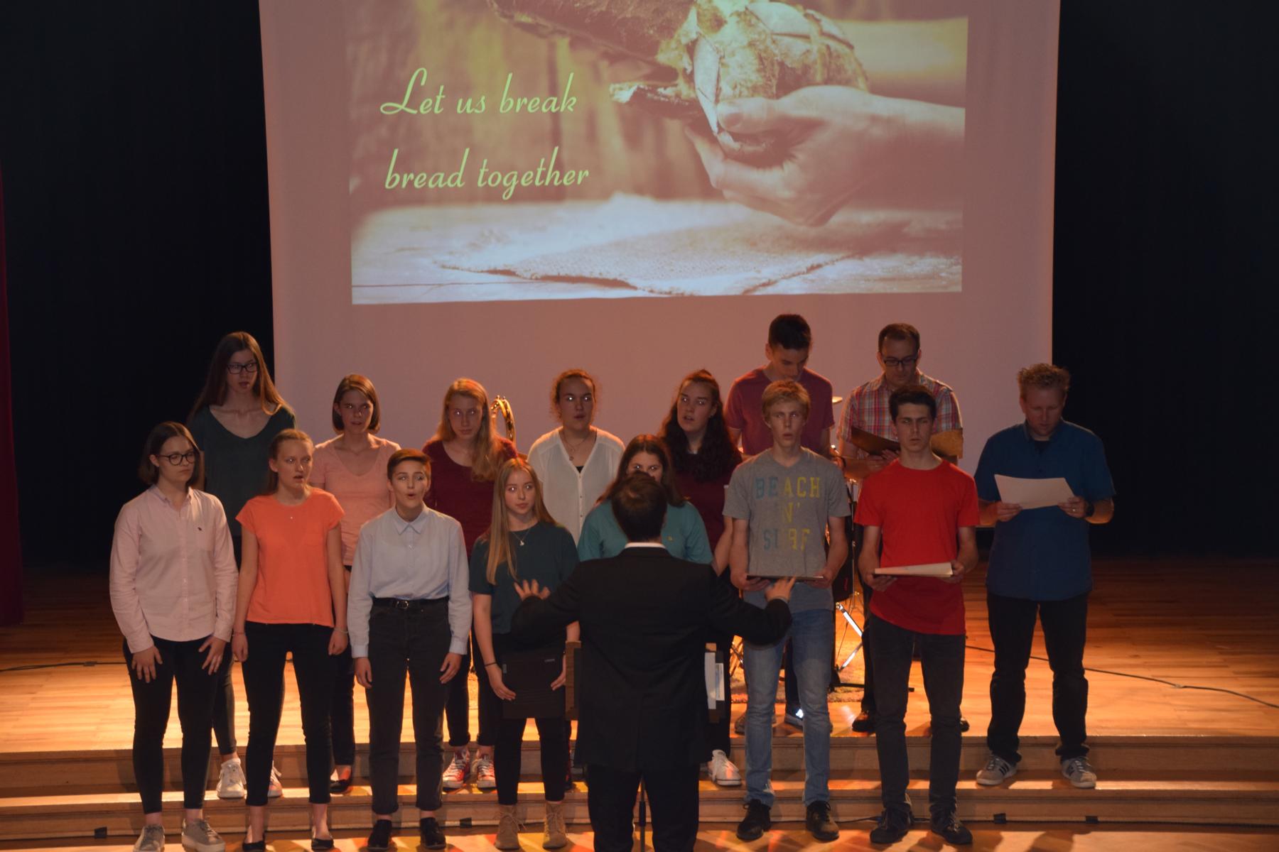 Klein aber fein - der Oberstufenchor zeigte, was er unter anderem im Chorworkshop gelernt hat: Begeisterung und Perfektion über die Rampe bringen.