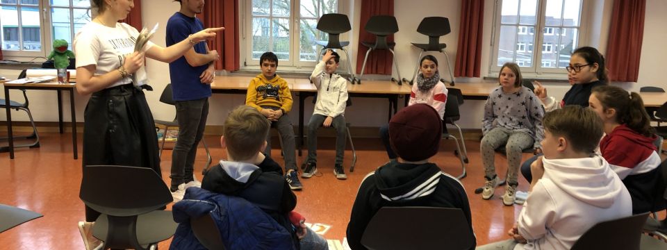 Madame Viprey und Monsieur Mussard brachten den Adolfinern erste französische Begriffe bei und ließen sich im Gegenzug auch von den Schülerinnen und Schülern bei der Übersetzung ins Deutsche helfen. Nach 45 Minuten war die Überraschung groß, als die beiden sich in fließendem Deutsch bedankten: „Es macht viel Freude mit so motivierten Jugendlichen zusammenzuarbeiten. Danke!“