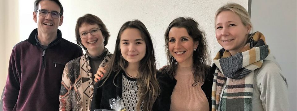 Brachte den Adolfinern Frankreich ein Stückchen näher: Gastschülerin Katharina Seidel zusammen mit Matthias Dierks, Babett Götz, Tatjana Meier und Ursula Schrader.