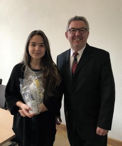 Ist über den kulturellen Austausch immer erfreut: Schulleiter Hans van Stephoudt verabschiedet Katharina Seidel.