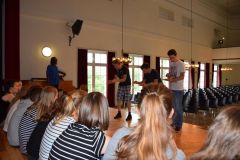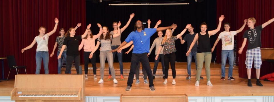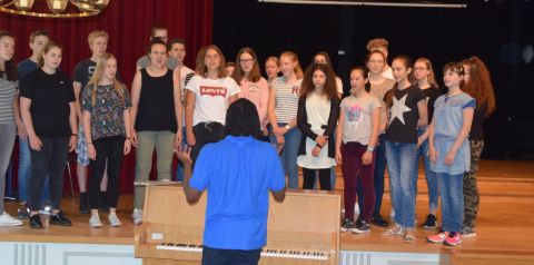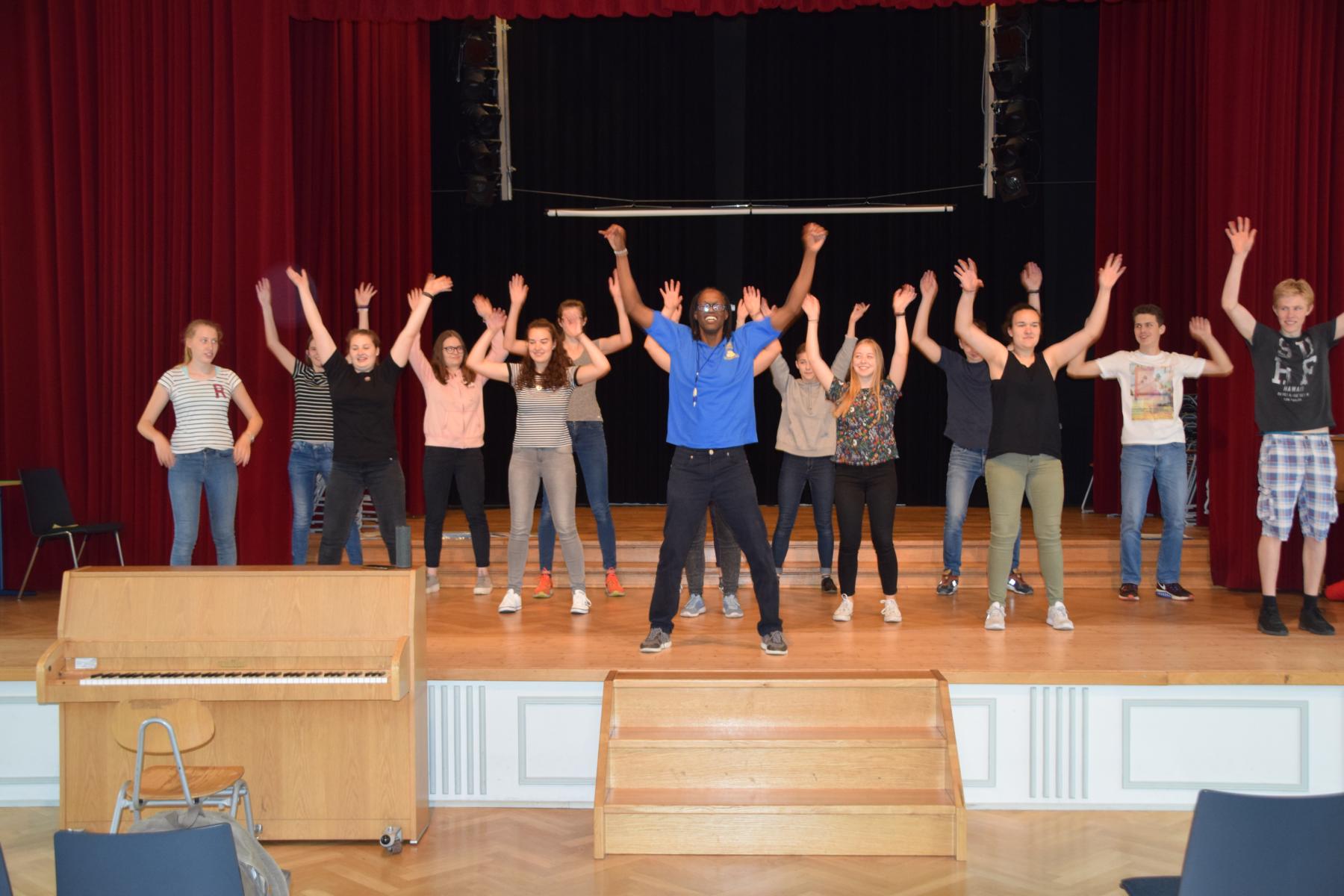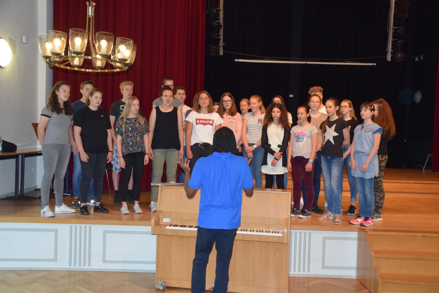 Am 2. Juni 2018 fand in der Aula des Gymnasium Adolfinum eine Veranstaltung der besonderen Art statt. Sängerinnen und Sänger des Oberstufenchores, der Schulband sowie Einige des Unter- und Mittelstufenchores arbeiteten im Rahmen eines Workshops mit einem Musicalstar, um Musicalluft zu schnuppern, an ihren gesanglichen Fähigkeiten zu feilen und sich somit zugleich auf das diesjährige Sommerkonzert vorzubereiten.
