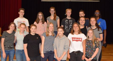 Ein tolles Team: DMJ mit dem Oberstufenchor (u.: Laura Beul, Anne Wessel, Luzi Weichert, Lucie Heße, Julia Weber, Hannah David, Susanna Gotzens, Mitte: Mara Oppenberg, Hannah Oppenberg , o.: Dominik Bux, Juliane Berns, Dorian Wiegelmann, Leon Pietsch)