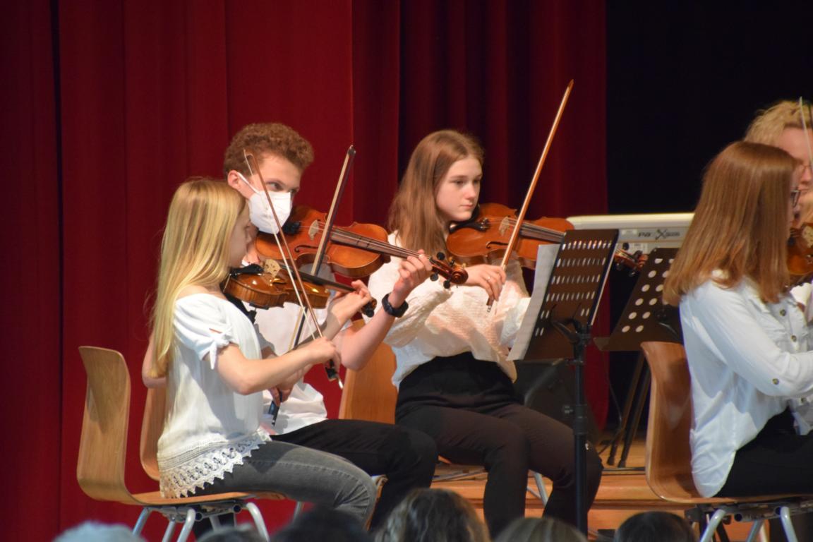 Sehnsucht herrschte auch auf Seiten der Ensembles, die dem Publikum einen facettenreichen und etwas längeren Konzertabend als gewohnt bescherten – nach der langen Zeit des Wartens und der Vorfreude auf endlich wieder stattfindende Konzerte war das doch ganz verständlich. Die Musiklehrerinnen und Musiklehrer bedanken sich ganz herzlich bei allen Ausführenden für ihren tollen Einsatz.