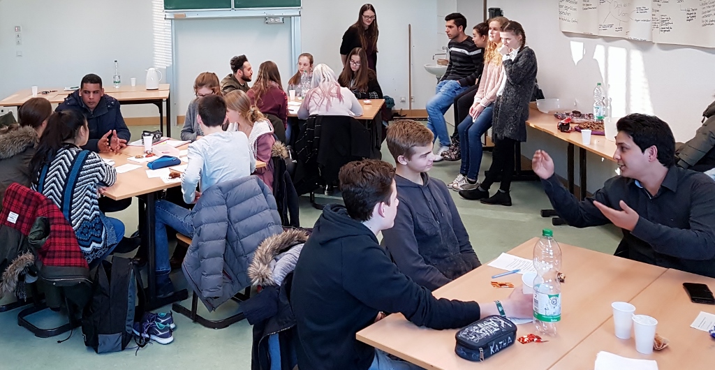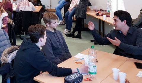 Diese Vorgehensweise ermöglichte es unseren Schülerinnen und Schülern, Gemeinsamkeiten und Unterschiede zwischen den Erlebnissen der Migranten herauszuarbeiten. Eindrucksvoll erläuterten unsere Gäste ihre Erwartungen an die neue Heimat sowie Strategien zur Überwindungen von Sprachbarrieren.