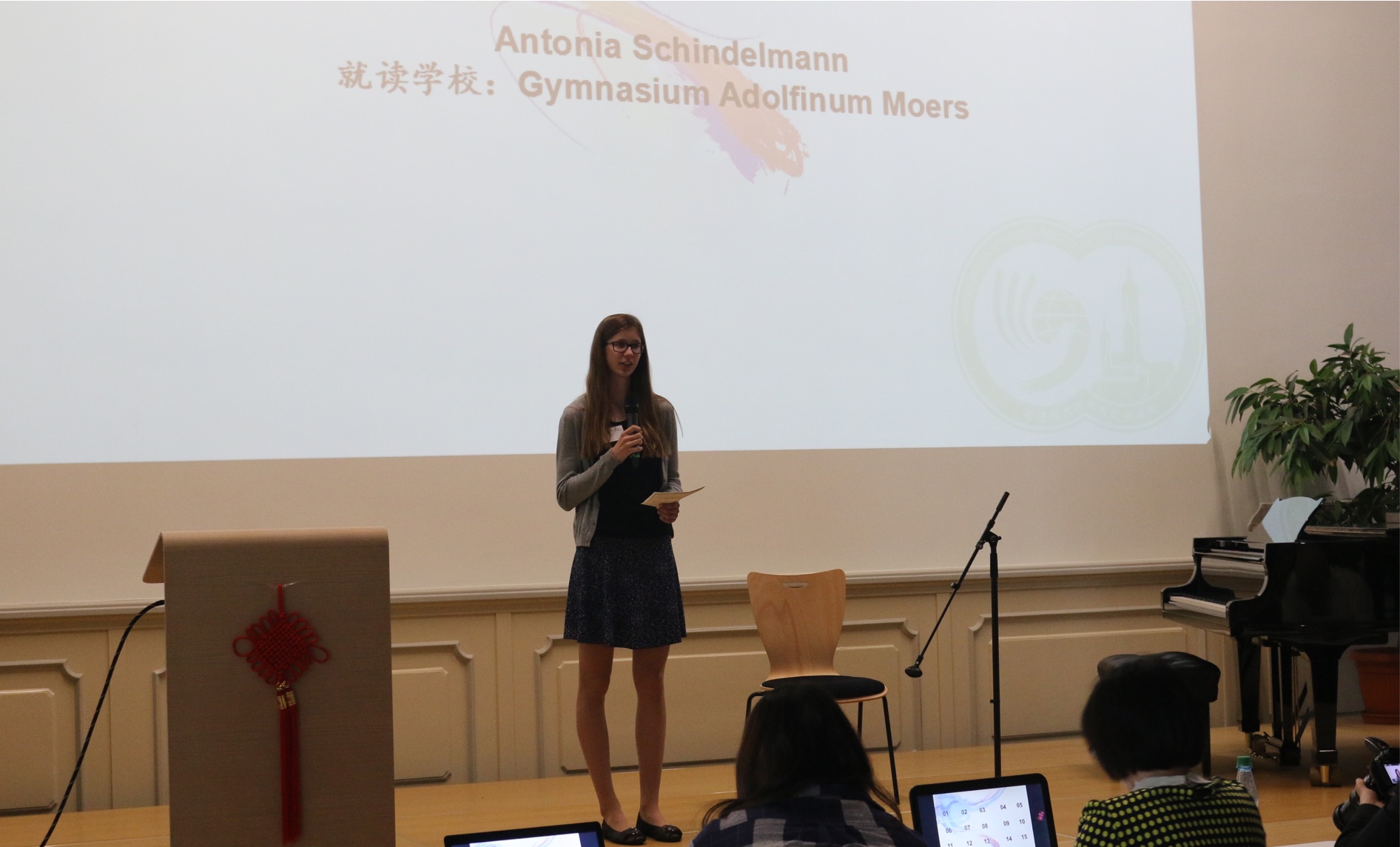 Am Samstag, 17. Juni 2017 war es so weit: In Göttingen fand das Deutschlandfinale des 10. „Chinese Bridge“ Chinesisch–Wettbewerbs für Schülerinnen und Schüler statt. Unter den Teilnehmern waren diesmal auch zwei Adolfiner: Antonia Schindelmann und Batuhan-Yilmaz Ay aus dem Chinesisch-Grundkurs der Einführungsphase. Und sie trafen im Adam-von-Trott-Saal an der Georg-August-Universität Göttingen auf starke Konkurrenz: 14 weitere Schüler aus ganz Deutschland, die Besten aus den Regionalwettbewerben. Die meisten von ihnen verfügen über fortschrittliche chinesische Sprachkenntnisse, die sie zum Teil über mehrere Jahre erworben hatten. Nicht wenige von ihnen verbrachten bereits ein Auslandsjahr in China. Doch trotz dieser Mitstreiter schlugen sich Antonia und Batuhan beachtlich.