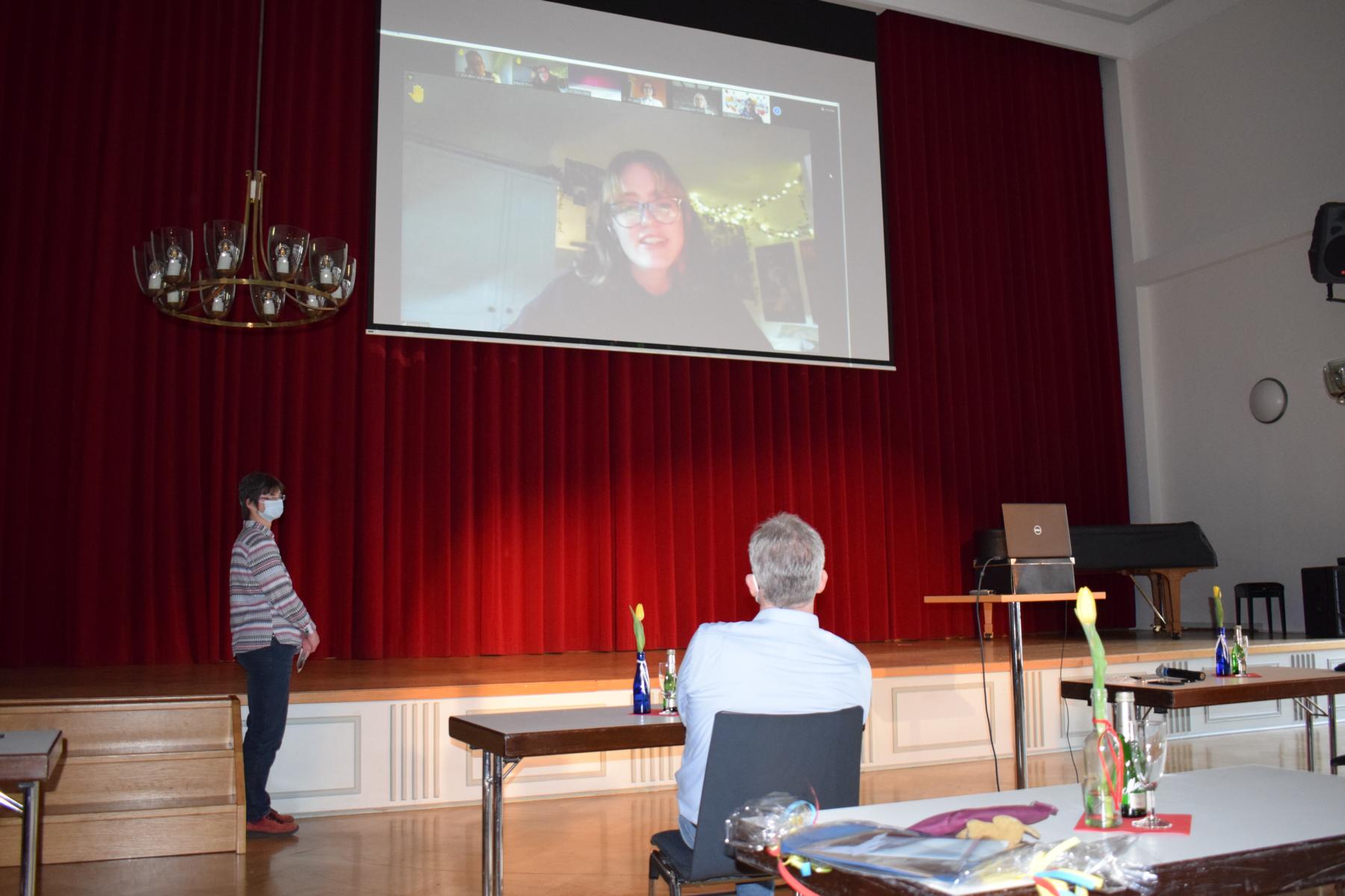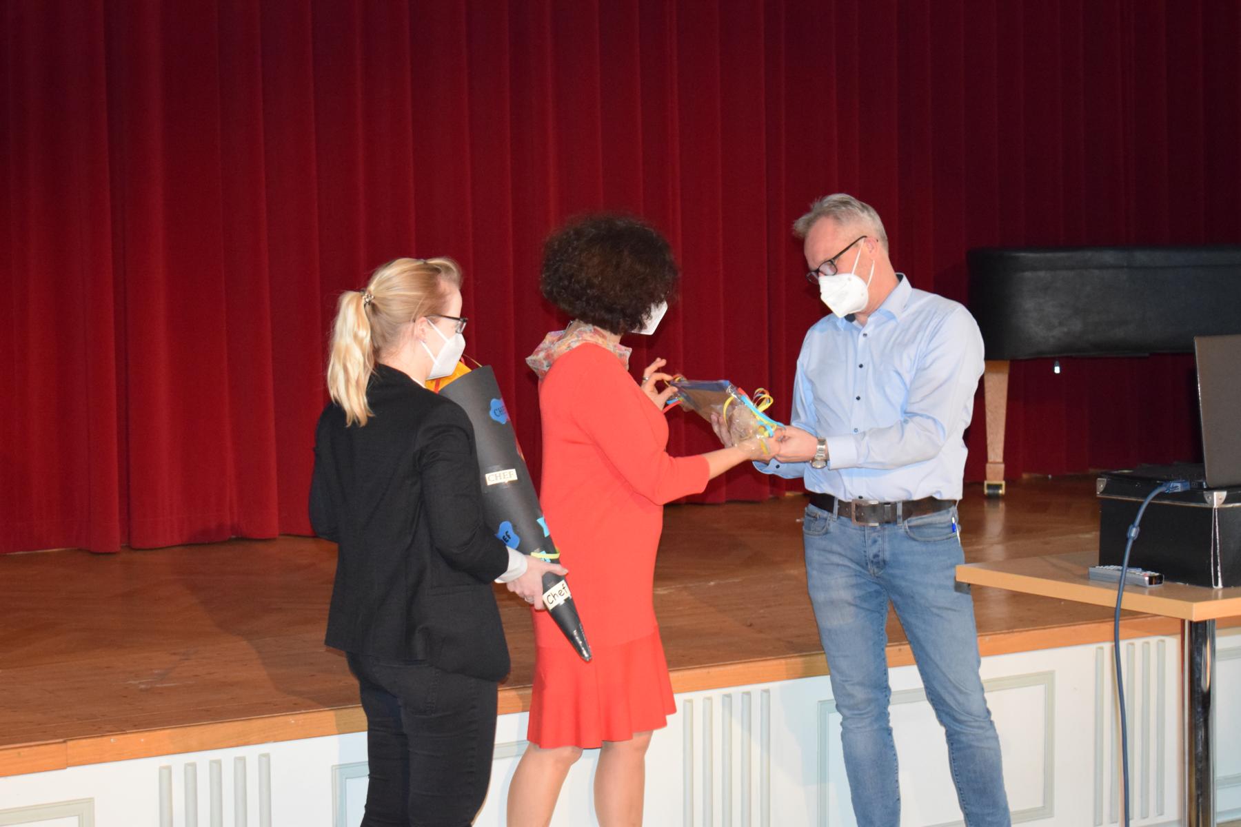 Zur Feier des Tages: Persönlich und virtuell konnten die Kolleginnen und Kollegen mit ihrem neuen Schulleiter Thorsten Klag anstoßen.