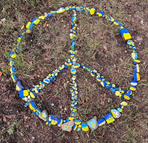 Da nicht alle Klassen und Kurse an dieser Aktion teilnehmen konnten, hier nun eine herzliche Einladung an alle Schüler*innen, Lehrer*innen, Eltern und Familie, eben alle Adolfiner*innen auch einen Stein in den Farben Blau und Gelb zu bemalen, um ein Teil unseres Friedenssymbols zu werden.