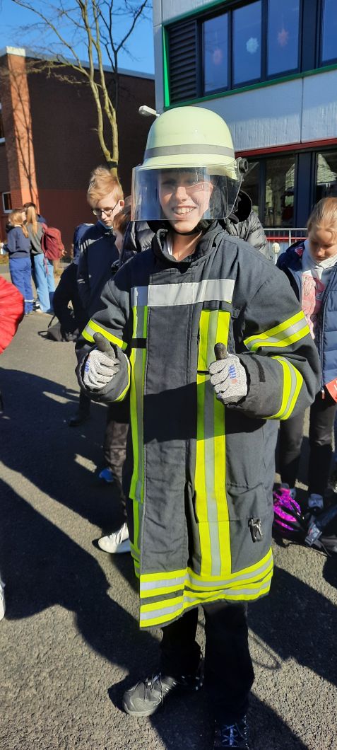 Zum Abschluss des Besuch dankte Schulleiter Thorsten Klag Katharina Adams für die Idee und den Feuerwehrleuten für die Präsentation: „Solche Erlebnisse bleiben im Gedächtnis der Schülerinnen und Schüler und sind damit eine Bereicherung für unsere schulische Arbeit.“