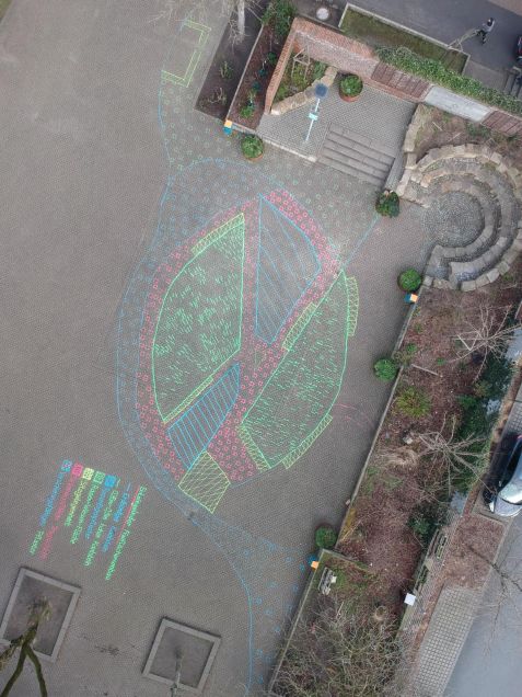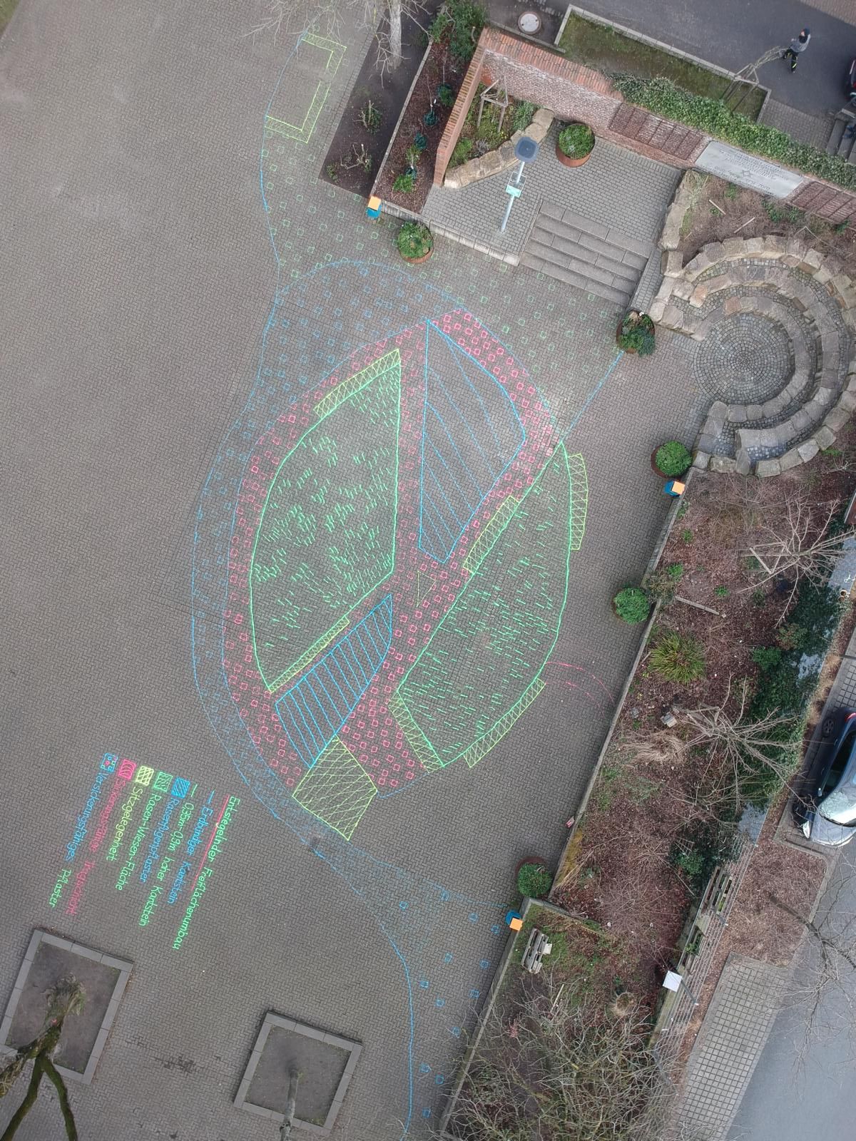 Maßstabsgetreu: Die Bodenzeichnungen verdeutlichen die zukünftig anvisierte Schulhofgestaltung.
