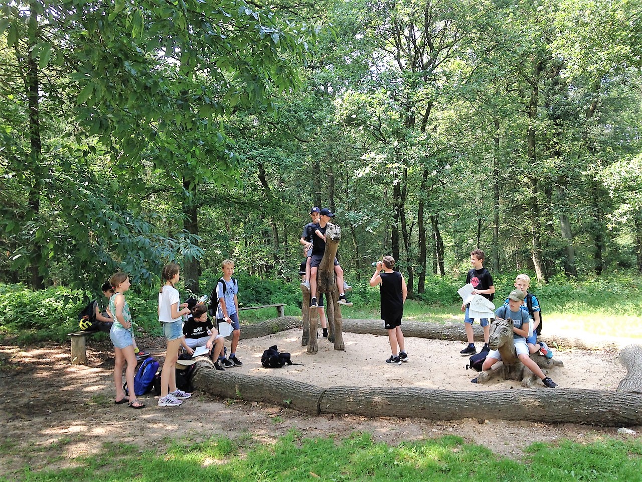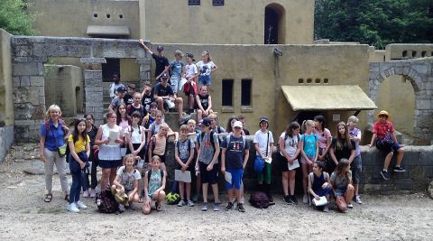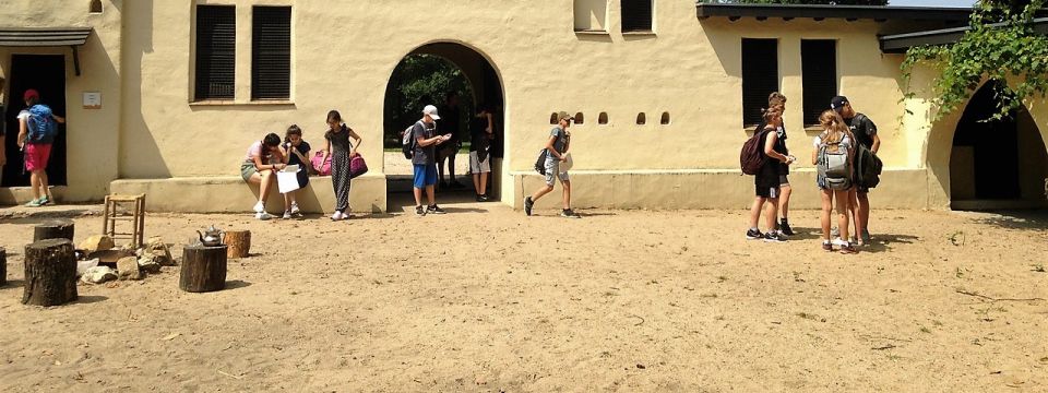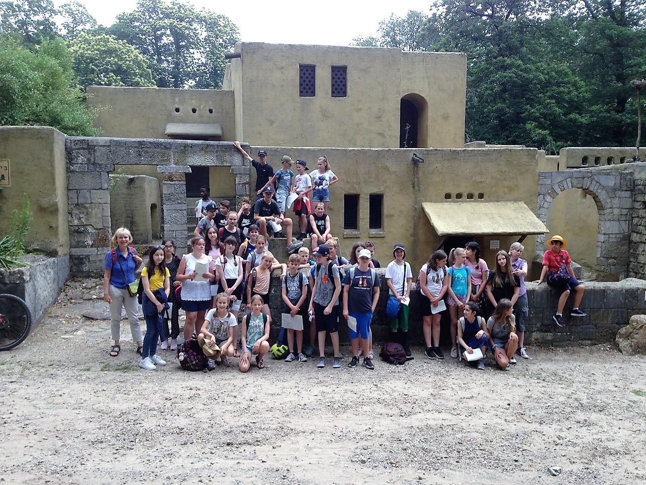 Mit einem Team aus Religions- und Philosopielehrerinnen und -lehrern machten wir uns mit der   Jahrgangsstufe 6 auf den Weg, um das „Heilige Land“ zu besuchen. Ein großes Freilichtmuseum in der Nähe von Nijmwegen, die „Heiliglandstiftung“, führte uns zurück in die Zeit von Jesu Geburt bis in die Anfangszeit des Islams. Das Wetter tat ein Übriges und bescherte uns eine Temperatur, wie sie im Hochsommer in Israel herrscht. Gerne hätten unsere Schülerinnen und Schüler schon bei einem holländischen Freizeitpark, den wir auf der Strecke passierten, die Fahrt beendet. Dies war aber am eigentlichen Zielort schnell vergessen. Schafe, Ziegen eine nachgebaute kleine Stadt aus der Zeit Jesu und viele weitere liebevoll gestaltete Details des damaligen jüdischen Lebens  in  Beth Juda, unserer ersten Station, zogen unsere Sechstklässler schnell in ihren Bann. Weiter ging es von dort zu einer Karawanserei, in der wir nachvollziehen konnten, wie Karawanen auf ihrem Weg durch die Wüste, untergebracht werden.