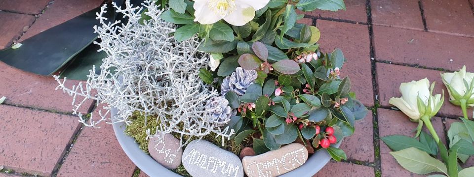 Stilvoll: Der Gedenkkranz der Schule. Gestaltet von den Kollegen Christina Evers und Sven Neumann.