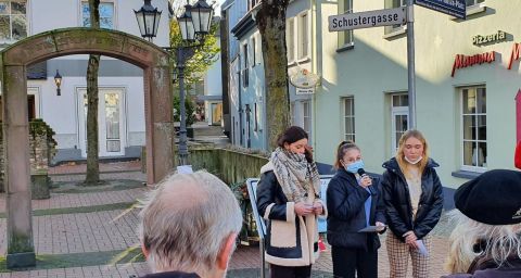 Mahnend: Die Klasse 9c verliest die Namen der Opfer der Shoa aus dem Synagogenbezirk Moers.