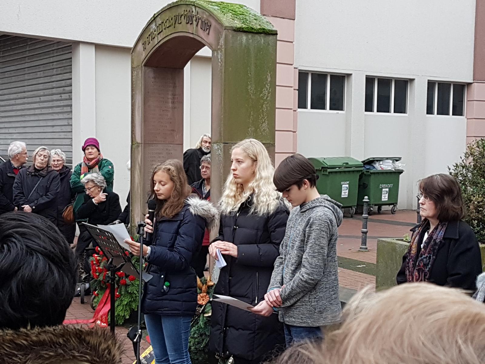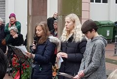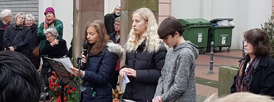 Von Schülerinnen und Schülern der Klasse 9 wurde ein Zeitzeugenbericht verlesen, in dem die systematische Diskriminierung und Verfolgung jüdischer Mitbürgerinnen und Mitbürger aus der Perspektive eines jugendlichen Mädchens geschildert wurde.