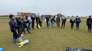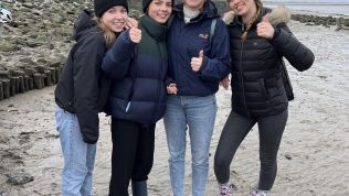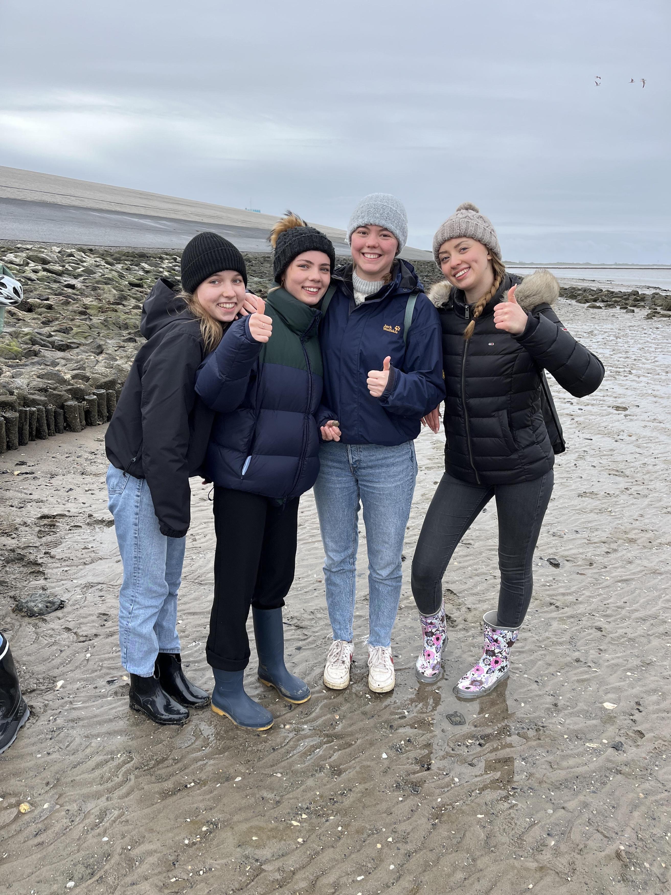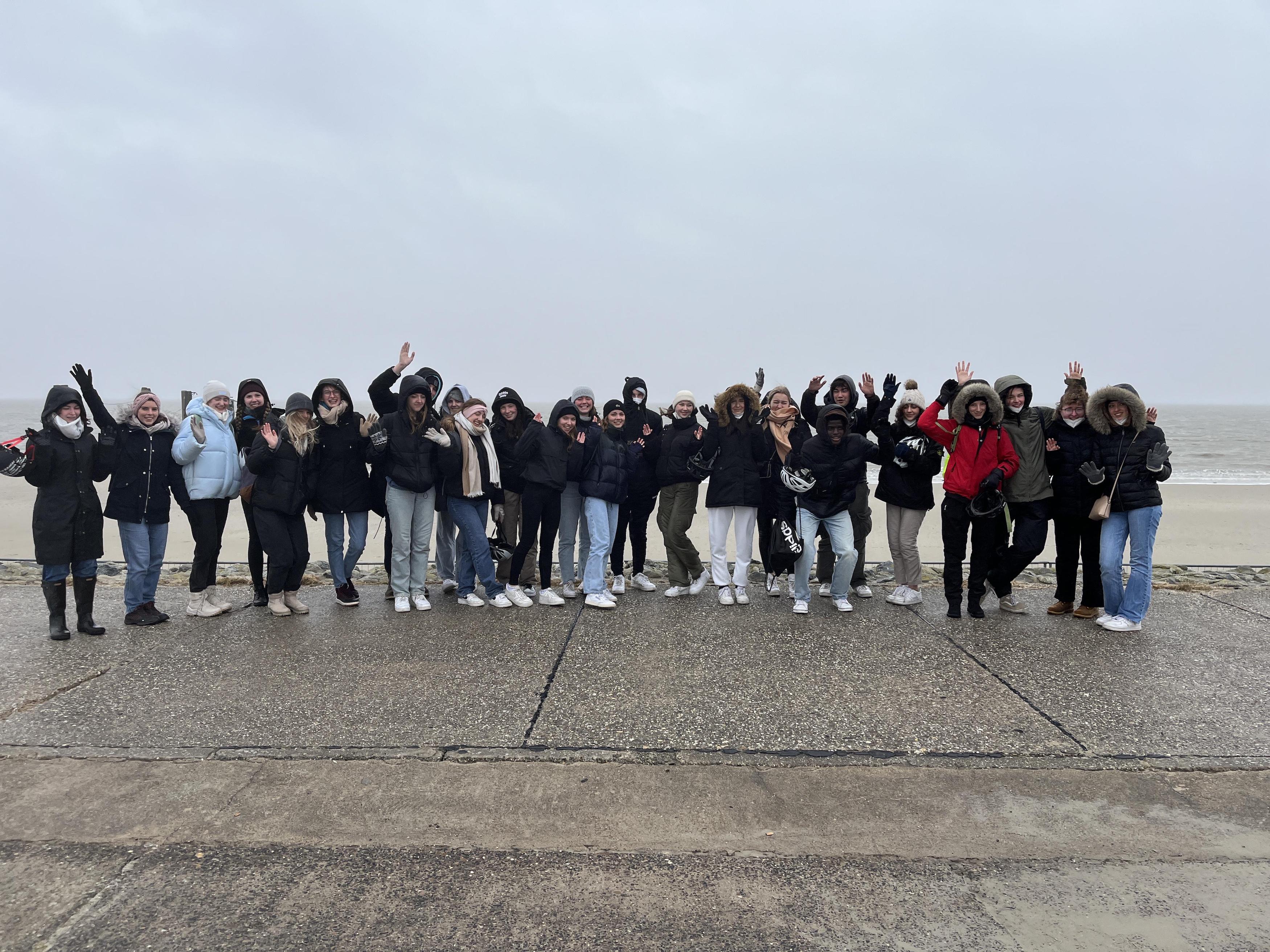 Der Pädagogik-Leistungskurs - begleitet von LK-Lehrerin Anna Müller und Lehrer Michael Neunzig - sendet liebe Grüße von der rauen Nordsee: "Bei viel Wind und Regen lassen wir uns die Stimmung nicht vermiesen, denn es gibt nur schlechte Kleidung, kein schlechtes Wetter! Vom Kiten an Land über eine Wattwanderung bis hin zur Erkundung der Insel Norderney sind wir glücklich, viele gemeinsame Aktivitäten unternehmen zu können - liebe Grüße an alle in Moers!"