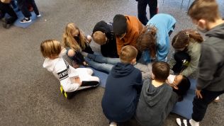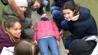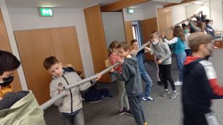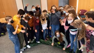 Viele Grüße aus Kevelaer sendet die Klasse 5a! "Trotz des schlechten Wetters treibt es uns immer wieder zu sportlichen Herausforderungen nach draußen", berichtet Klassenlehrerin Andrea Klein - und ist ein wenig neidisch auf ihren Kollegen: "Lateinlehrer Jens Heße wird hier von den Schülerinnenn und Schülern der Klasse auf Händen getragen - siehe Foto!"