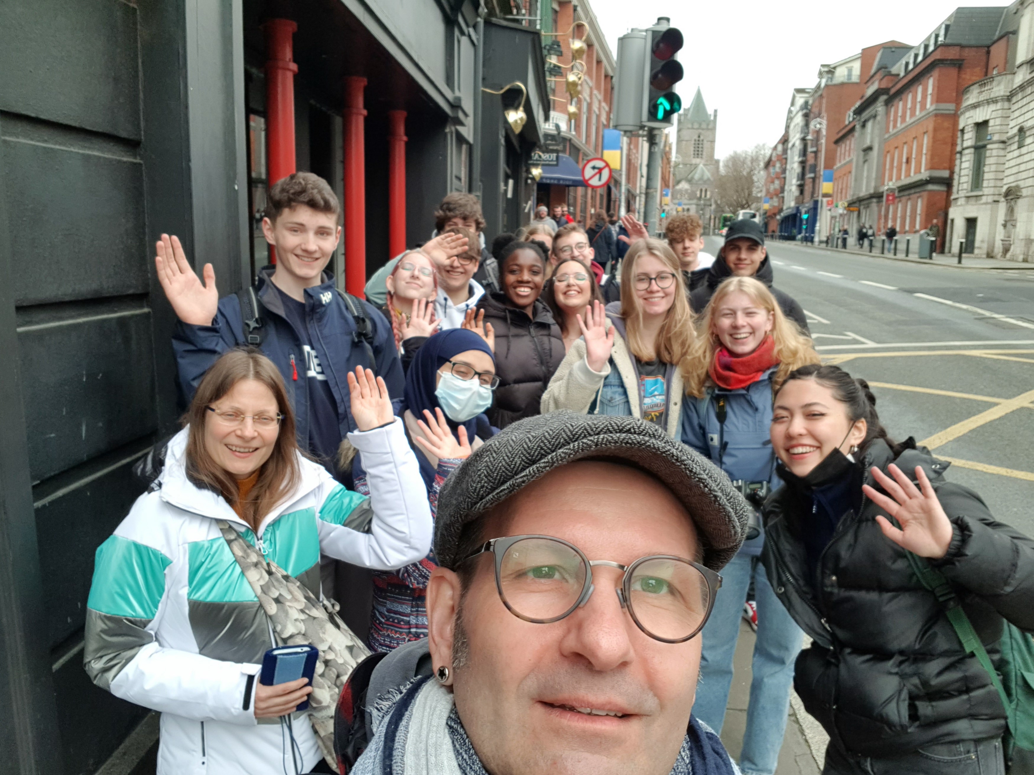 Hello from Dublin! Viele Grüße sendet der Englisch-LK von Lehrer Karsten Verhoeven, der mit den Schülerinnen und Schülern sowie Kollegin Katharina Grade die Straßen Dublins unsicher macht: "Wir sammeln viele Eindrücke, besuchen großartige Gefängnisse (Kilmainham Gaol) bei abwechslungsreichem Wetter und erforschen die Geschichte des irischen Rock'n'Rolls - see you in "Temple Bar"!"