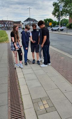 Passend zum Thema im Unterricht, bei dem wir die deutsche Geschichte von 1933 bis 1945 behandelten, haben wir die Stolpersteine in der Moerser Innenstadt untersucht. Mithilfe der Stolpersteine-App des WDR konnten wir weitere Informationen über die Personen hinter den Steinen erhalten.