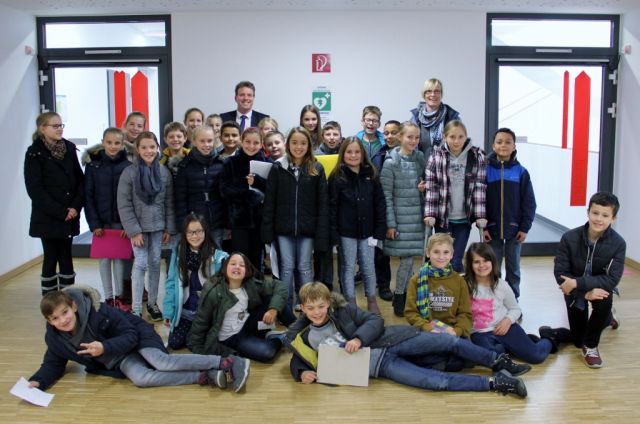 Am 23. November waren wir, die Klasse 5a, zu Gast im Rathaus. Nach einem Abstecher ins Trauzimmer, in dem einige ihre eigene Geburtsurkunde in einem der Bücher aus dem Archiv des Einwohnermeldeamtes bestaunen konnten, informierten wir uns im Kinder- und Jugendbüro, wie weit die Pläne für die neue Skaterbahn sind. Höhepunkt war der Besuch im Ratssaal und das Interview mit Bürgermeister Christoph Fleischhauer. Geduldig beantwortete er alle Fragen, die wir uns vorher überlegt und mitgebracht hatten.