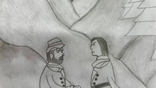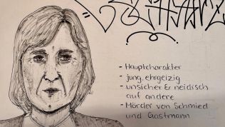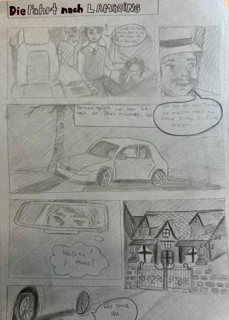 So konnten wir zum Beispiel die Geschichte des Romans fortsetzen, eine zentrale Szene aus dem Buch als Comic adaptieren, ein Filmplakat erstellen, eine Hörspiel-Szene einsprechen oder einen Soundtrack zusammenstellen, ein Escape-Room-Spiel anfertigen oder eine Gerichtsverhandlung als „Spielfilm“ inszenieren und Portraits zu den Hauptfiguren des Romans zeichnen. Dabei wurde uns großer Freiraum gelassen, unsere eigenen Ideen kreativ umzusetzen.